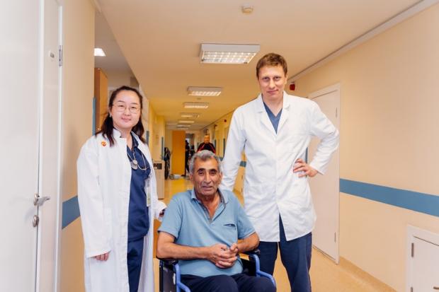 «Мы будем продолжать использовать протезы разных производителей, имеющие различные особенности, но для части пациентов совершенно точно будем применять новый протез, в котором уверены, - говорит руководитель проекта, врач-сердечно-сосудистый хирург Дмитрий Андреевич Сирота. - На данный момент производитель учел все результаты нашей первой клинической апробации, изделие зарегистрировано производственным партнером и будет доступно к заказу для любого кардиохирургического центра России». В свою очередь, Центр Мешалкина заключил договор о научно-техническом сотрудничестве с компанией «МедИнж» по разработке медицинских изделий для сердечно-сосудистой хирургии. Это позволит НМИЦ иметь надежного производственного партнера и при доведении до готовности новых перспективных разработок оперативно внедрять их в хирургическую практику. На фото пациент накануне выписки со своими врачами - кардиологом Аяной Жаргаловной Будажаповой и кардиохирургом Дмитрием Андреевичем Сиротой