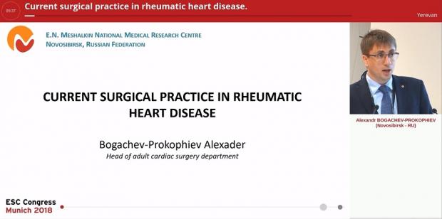 Руководитель центра новых хирургических технологий Александр Владимирович Богачев-Прокофьев выступил с лекцией, посвященным хирургической практике в лечении пациентов с ревматическим поражением клапанного аппарата сердца. «Несмотря на то что количество больных ревматическими болезнями сердца ежегодно снижается, у 50% пациентов Центра Мешалкина с митральными пороками заболевание вызвано в результате ревматического процесса. В Европе в 22% случаев поражений клапанного аппарата сердца причиной заболевания является ревматизм, в США - до 20%», - отметил Александр Богачев-Прокофьев.