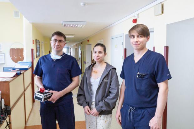 На фото пациентка с сердечно-сосудистыми хирургами, выполнявшими операцию: Александром Владимировичем Богачевым-Прокофьевым и Антоном Сергеевичем Залесовым.