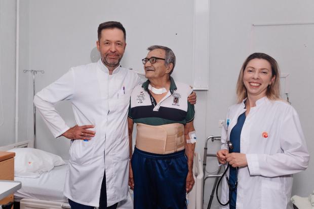 Поэтому глубочайший поклон всем сотрудникам нашего отделения, дежурной хирургической бригаде и особенно анестезиологам-реаниматологам Андрею Клейну, Константину Попову, Дмитрию Будневу, которые постоянно «вытаскивали» и возвращали нам этого сложного пациента в ходе операции, и команде реаниматологов под руководством Михаила Николаевича Дерягина, которая в послеоперационном периоде сумела совершить настоящее чудо - выходить его».